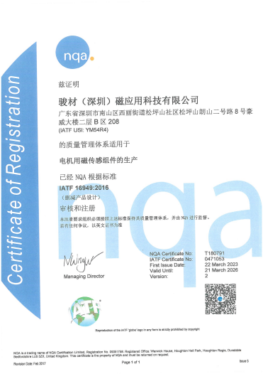 駿材磁應用科技有限公司獲得TS16949認證,公司的能力節節攀升