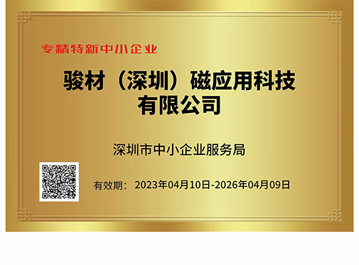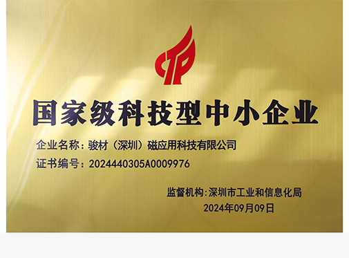 駿材磁應用科技有限公司獲得深圳、全國高新技術企業,深圳市創新技術企業等多項榮譽
